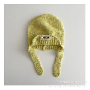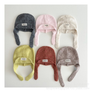 韩系儿童洋气翻檐布标男女童洋气护耳冷帽冬季百搭凹造型套头帽子