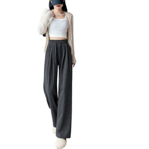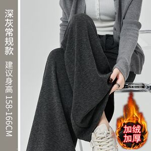 秋冬加绒加厚大码显瘦软糯窄款阔腿裤女宽松休闲直筒小个子长裤潮