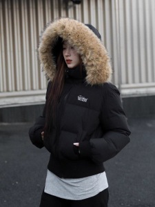 美式冬季短款毛领羽绒棉服女2025新款收腰显瘦高级感棉衣棉袄外套