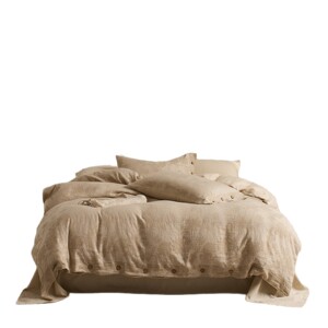 A类棉麻色织提花床单日式被套四件套民宿风37%亚麻床上用品4