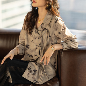 年轻版新中式上衣改良轻国风大码女装衬衣复古重工盘扣长袖衬衫秋