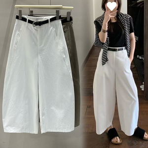 夏季洋气无袖弯刀阔腿裤女高腰简约气球裤百搭显瘦休闲裤