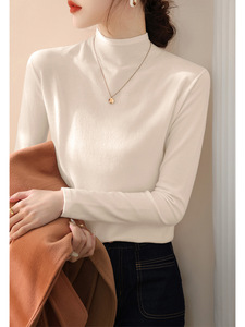 白色内搭打底上衣2025秋季新款修身显瘦五分袖针织衫半高领毛衣女