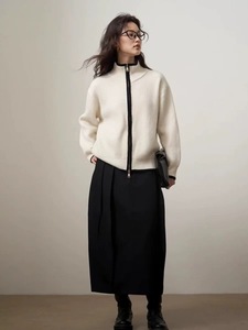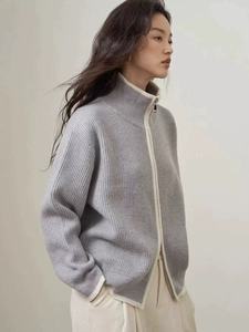 双拉链毛衣秋季新款轻熟风设计感休闲衣服棒球领100纯羊毛衫开衫