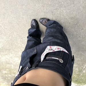 美式高街辣妹亚文化宽松牛仔裤子女设计感赤耳碎花拼接直筒拖地裤