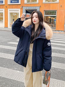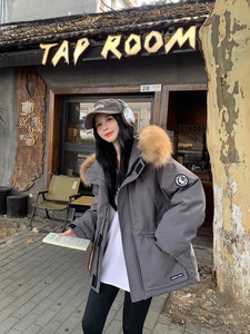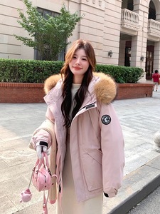工装羽绒服女202冬季新款韩版毛领派克服短款白鸭绒宽松加厚外套