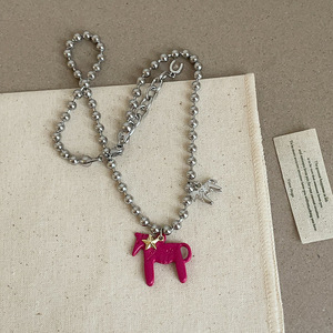 玫红色小马驹项链