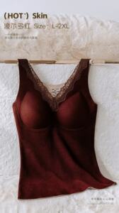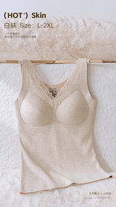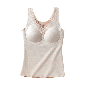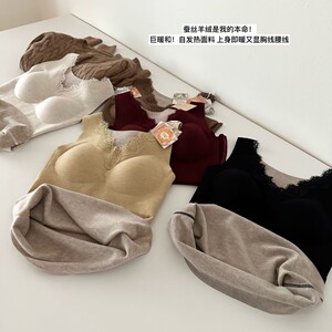 秋冬蕾丝保暖内搭羊毛双面磨毛无痕加绒加厚百搭带胸垫保暖背心女