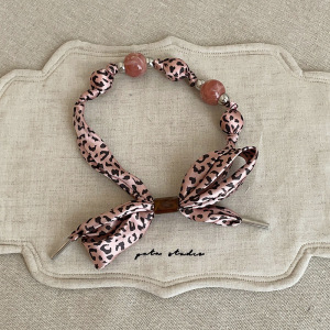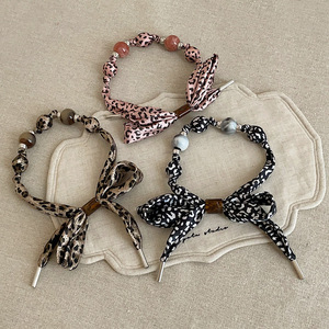 美拉德豹纹丝巾蝴蝶结串珠项链女轻奢复古潮流时尚百搭颈链锁骨链