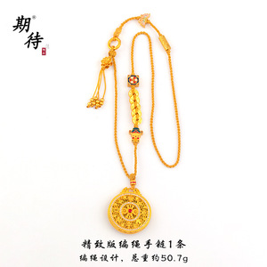 直播爆款沙金镶钻金刚杵八宝罗盘吊坠项链五帝钱财神编绳蝴蝶项链