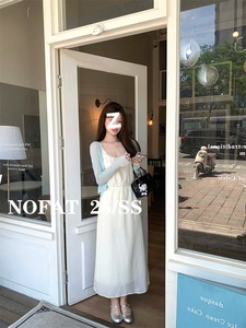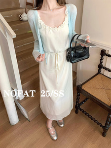 2025上新【月光诗人gloss】韩系波浪边绑带收腰连衣裙两件套套装