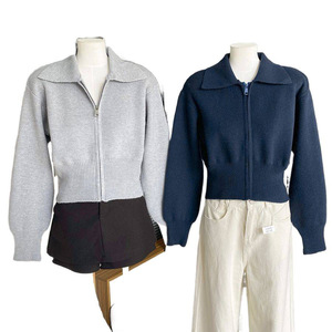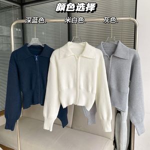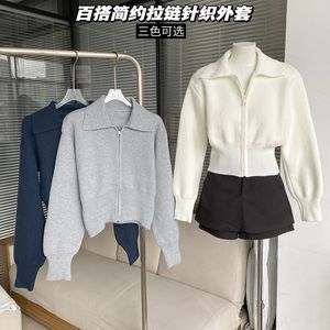 短款针织开衫翻领外套洋气修身春秋毛衣新款长袖设计拉链上衣