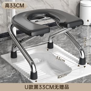 承重300斤【带棉垫子+坐便桶】加稳防滑-黑色】高33CM不锈钢-适高1.5米以下