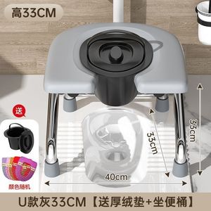 承重300斤【带棉垫子+坐便桶】加稳防滑-灰色】高38CM不锈钢-适高1.65米以下