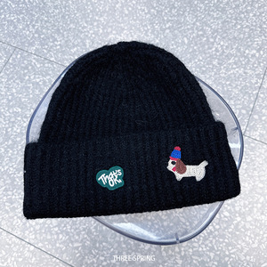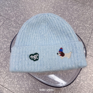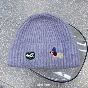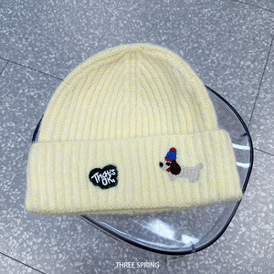 批发韩国2025年秋冬新款小狗刺绣毛线帽女大头围显脸小套头针织帽