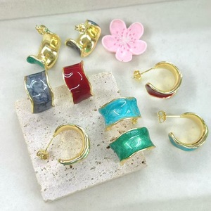 时尚个性不规则C字形滴油耳环饰品轻奢气质简约铜镀18k高级感耳钉