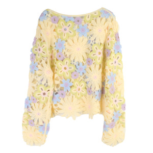波西米亚度假风花朵套头长袖毛衣女宽松气质秋冬新款民族田园毛衣