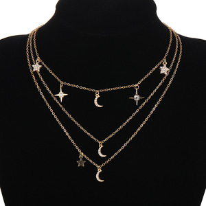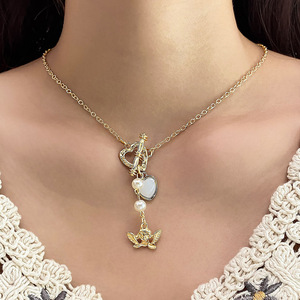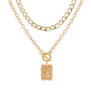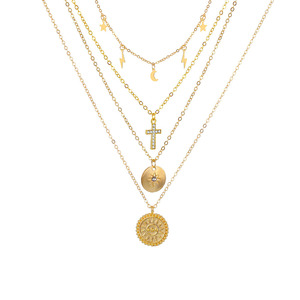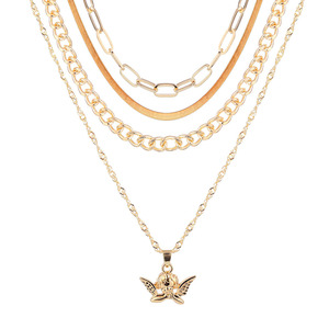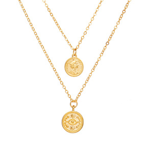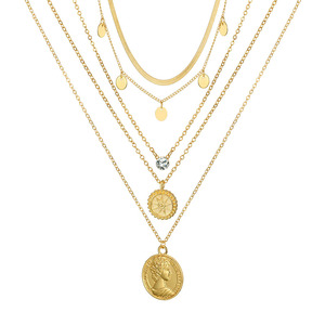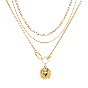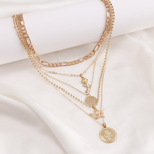 欧美跨境几何时尚天使肖像玫瑰花朵吊坠多层女士项链套装钱币项链