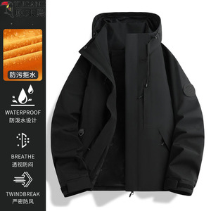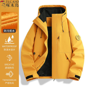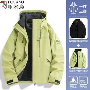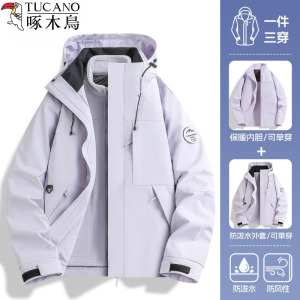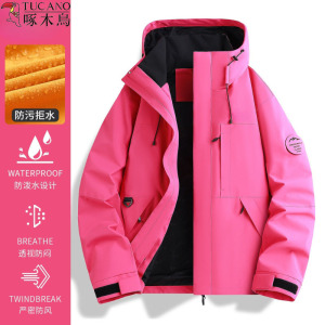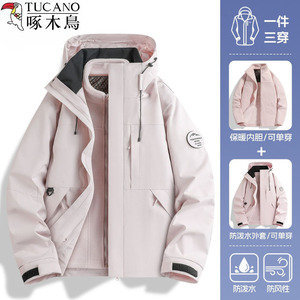 啄木鸟山系冲锋衣女士户外男防风防水三合一登山服玫红色外套