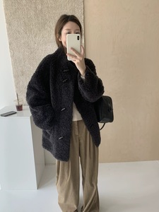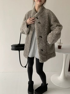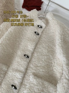 【暖绒物语】100绵羊羔毛牛角扣冬季新皮毛一体皮草外套女中长款