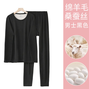 男女款秋衣秋裤羊毛蚕丝保暖内衣双面加绒发热情侣睡衣套装秋冬