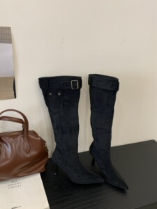 1838-1~高跟法式尖头不过膝长靴女靴子2025年秋季新款高筒堆堆靴