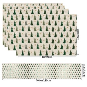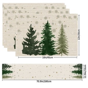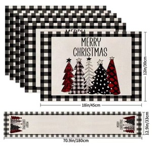 跨境圣诞节餐垫桌旗组合装亚麻印花圣诞派对氛围装饰桌布防污隔热