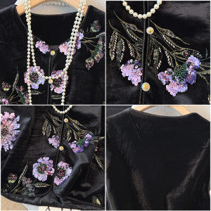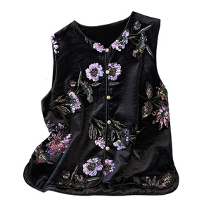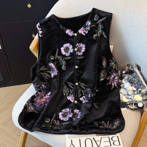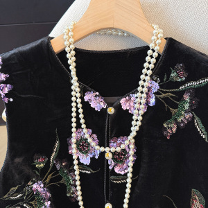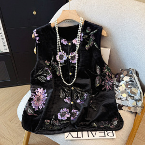 新款新中式珠片绣丝绒马甲女早秋复古大码女装2025年新款洋气上衣