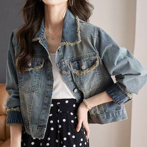 牛仔外套女2025春秋新款爆款宽松百搭高腰小个子洋气毛边上衣