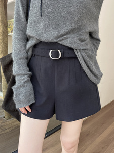 初打十三行2025秋季设计感松弛收褶通勤气质休闲腰带短裤女KA742