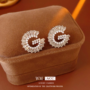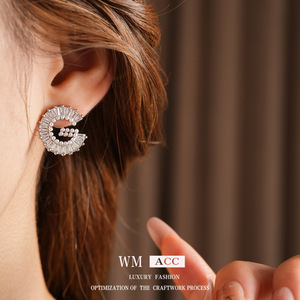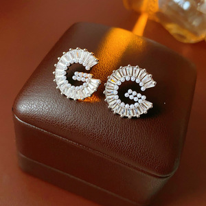 银针锆石珍珠字母G形耳环轻奢高级感耳钉个性夸张耳饰设计感小众