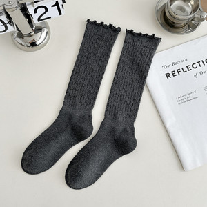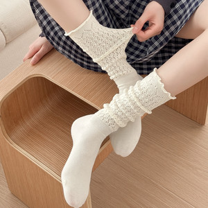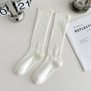 小茶生活复古堆堆袜子女春秋薄款针织镂空小腿袜韩国木耳花边长袜