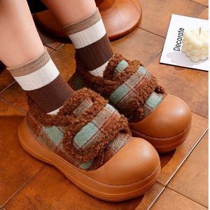 厚底雪地靴女新款加绒加厚东北大棉鞋魔术贴毛毛鞋子棉拖女款毛绒