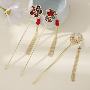 古风发簪金属盘发流苏汉服发钗百搭扇形新中式旗袍头饰发饰批发女