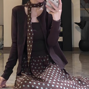 韩系穿搭一整套甜美减龄温柔吊带上衣针织开衫波点半身裙三件套女
