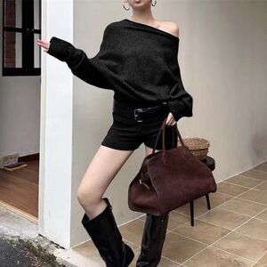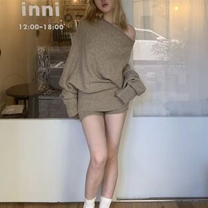 欧美风跨境秋季新款女装纯色宽松长袖上衣时尚高腰短裤针织套装女
