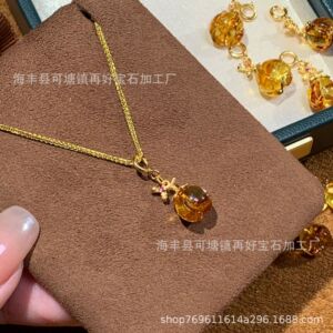 天然花珀桂花吊坠S925银镶嵌琥珀蜜蜡新中式锁骨链礼物女批发