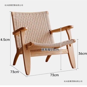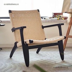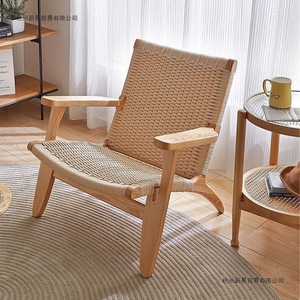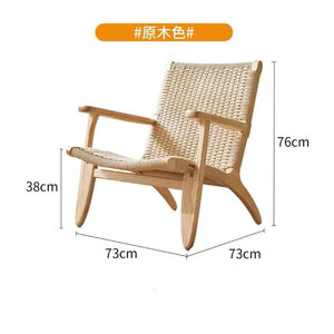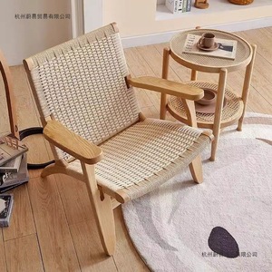 绳编实木单人沙发椅北欧阳台休闲椅子日式侘寂风小户型靠背懒人椅