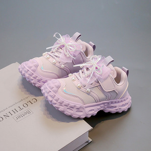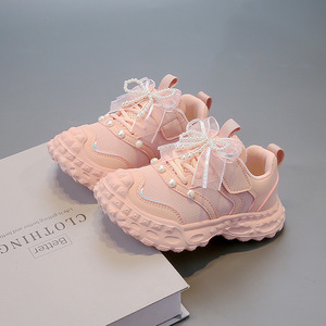 爆款皮面儿童运动鞋2025年秋款女宝宝时尚蝴蝶结软底防滑休闲鞋子