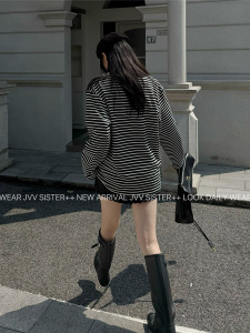 JVV十三行2025年秋季新款经典条纹长袖针织上衣百搭POLO衫女90596