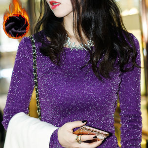 高领打底衫女秋冬加绒加厚亮金丝闪光丝保暖衣时尚洋气网纱内搭冬