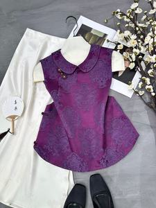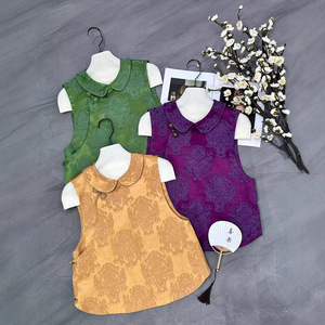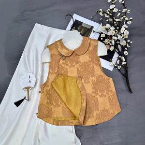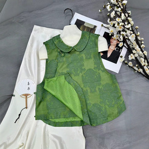 南油批发2025早秋款时尚娃娃领设计手工一字蝴蝶扣国风马甲背心女