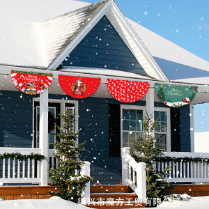 2025亚马逊新款扇形旗圣诞节派对门帘装饰圣诞半圆旗飘旗异形旗