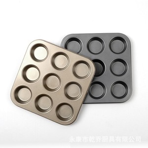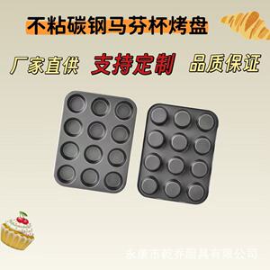 厂家批发6/9/12连不沾蛋糕模圆形平底马芬杯烤盘家用烤箱烘焙模具