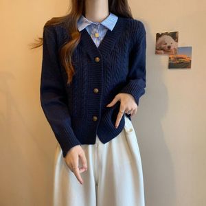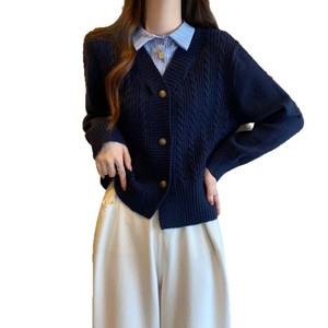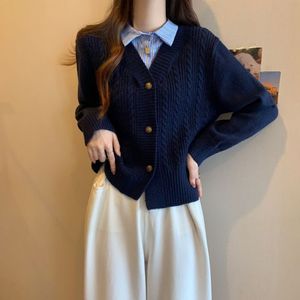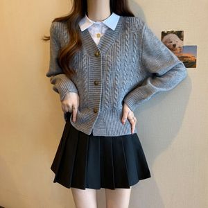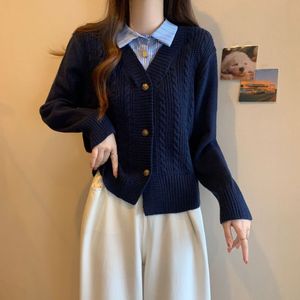 毛衣女款2025秋冬季新款拼接假两件衬衫针织开衫时尚长袖短款上衣