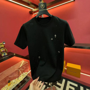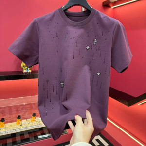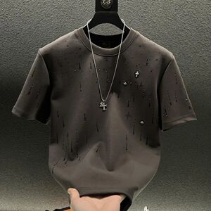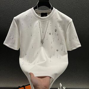 男士T恤潮牌半袖满天星圆领十字架体恤修身青年时尚休闲潮流短袖
