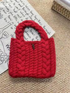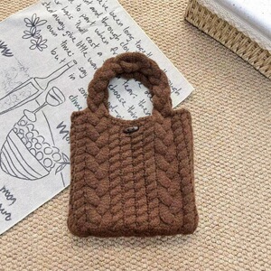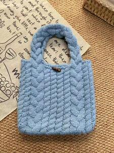 miu系手拎包马卡龙少女韩系针织手提包秋冬新款上新毛线针织包包
