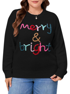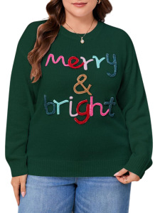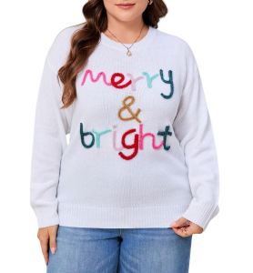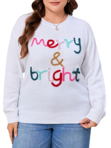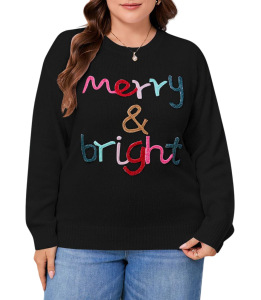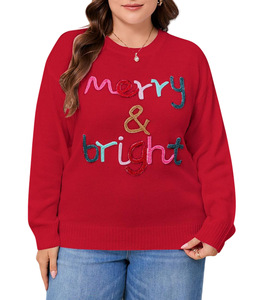 大码宽松欧美秋冬新款毛衣女跨境亚马逊针织字母提花圆领套头上衣