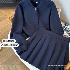 藏青色套装(版)【韩系//显瘦遮肉/胖女孩/学院风/超好看/韩里韩气/小洋装/网红炸街/辣妹/上班通