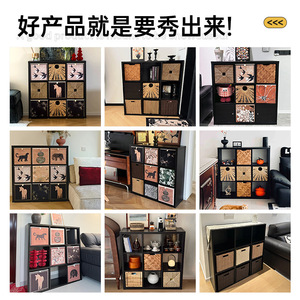 中古风实木书架落地置物架卡莱克格子柜九宫格小户型玄关柜子书柜